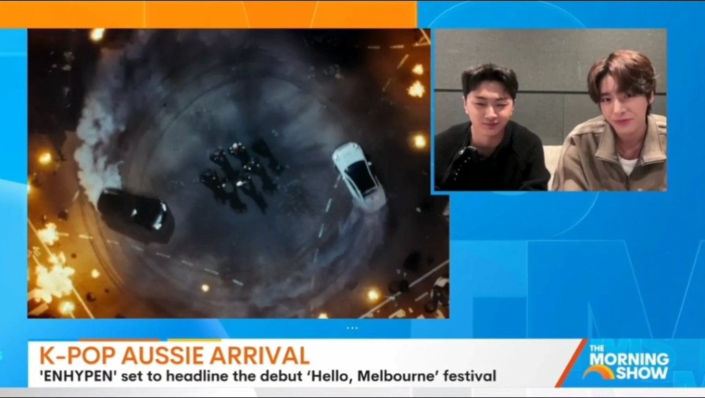Jake and Jay (the now two oldest members of ENHYPEN) appeared on The Morning Show (Australian) via video call on March 12th 2026 at roughly 11:00 AEDT. They were asked about how they do not have fixed choreo formations and Jake responded with “there’s been a change in choreo formations” which left fans Drunk-Dazed at the subtle confirmation from the members that Heeseung is really gone and will not be making an appearance at the Hello, Melbourne festival.