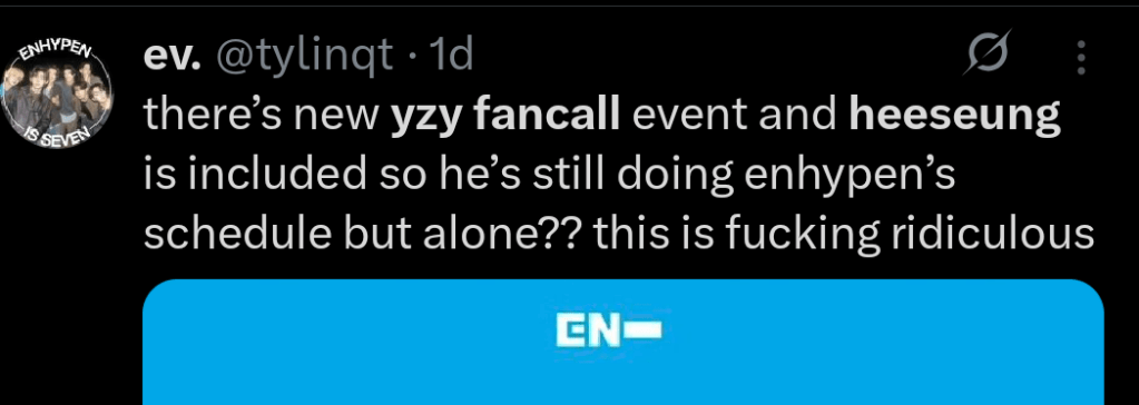 Having him do it on a different date is only giving the message that although he isn’t a part of ENHYPEN anymore, the company is still going to make as much use of him as possible after their last comeback — treating him like a product, something that should be Not For Sale.
